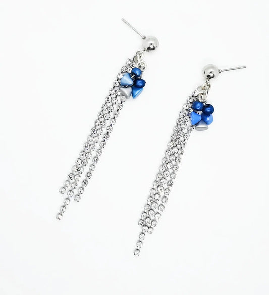 Royal blue Bead with Ion plated flowers earrings 2.25-inches