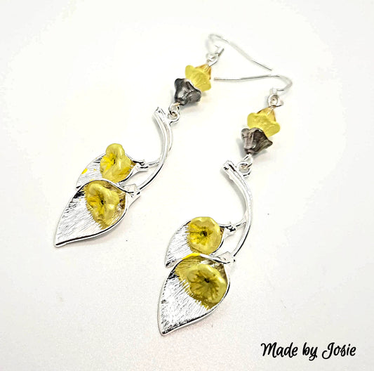 Cala Lily silver-plated earrings sterling ear hooks light yellow Czech beads