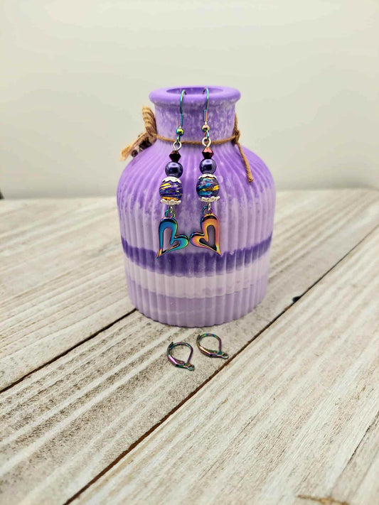 Ion Plating hearts purple rainbow Earrings 2.5inches