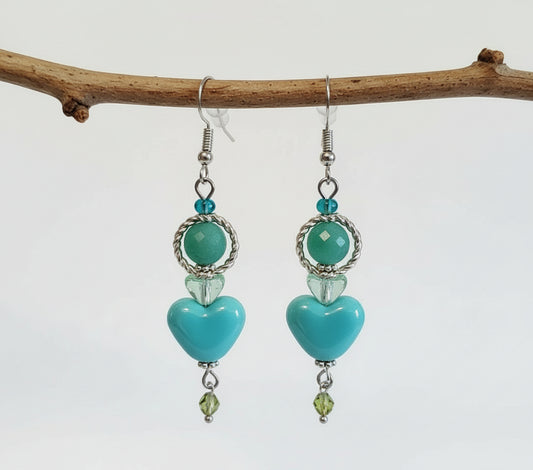 Turquoise ceramic heart silver Earrings 2.5 inches
