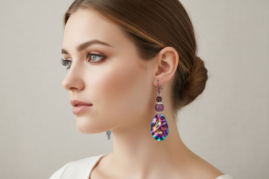 Rainbow Ion-Plated Drop Earrings with Purple Beads | 2.5 Inches