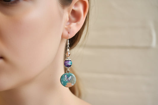 Spring Butterfly Earrings - Handmade Easter Clay Charm & Glass Beads