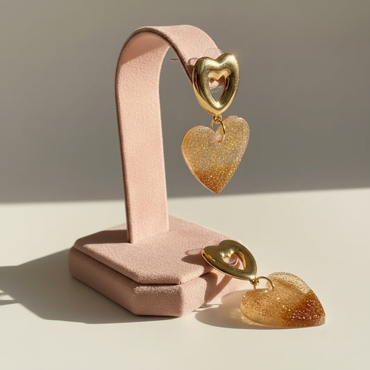Resin Gold Heart Earstud Earrings - Handmade Premium Jewelry