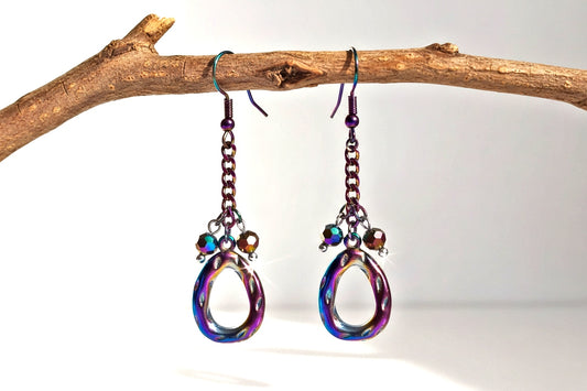 Rainbow Ion Plated Earrings - Purple Crystal Dangle Earrings with Silver Accents for Women