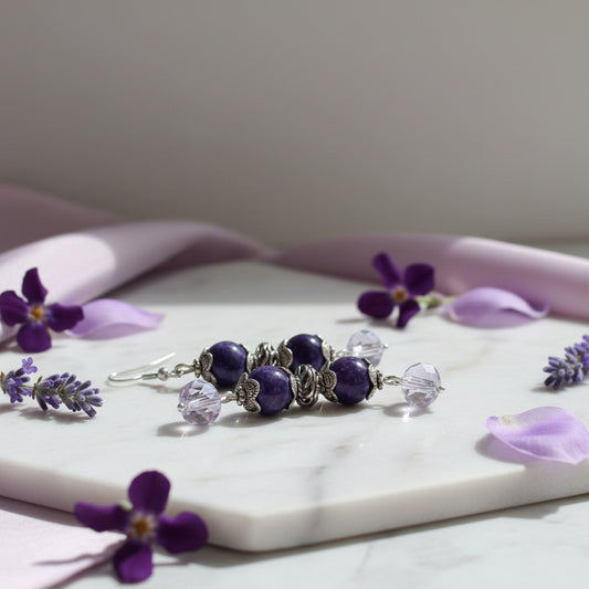 Purple Glass Bead Earrings - Antique Silver Dangle Earrings
