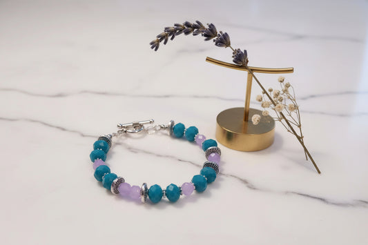 Coastal Calm Turquoise and Lavender Crystal Bracelet - Handmade Austrian Glass Bead Jewelry