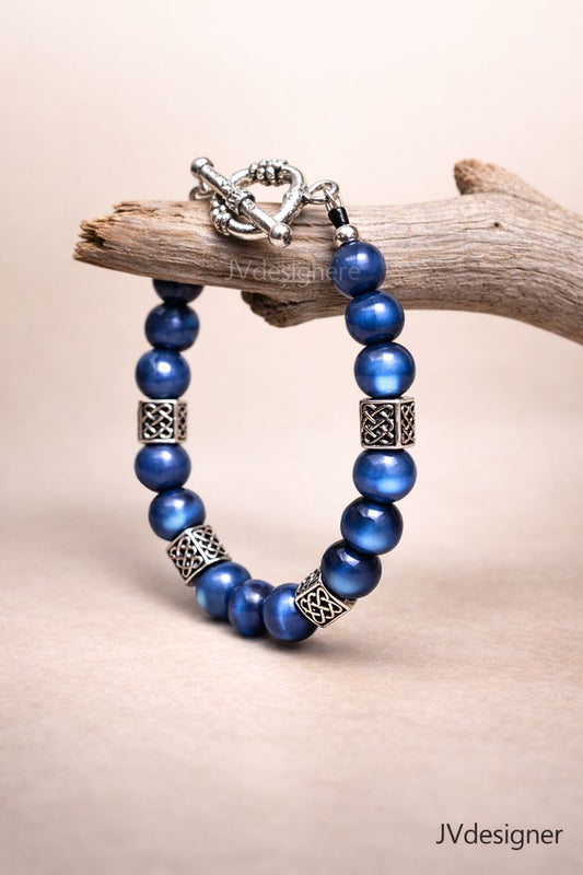 Purple/blueish Cat Eye Bracelet with Heart Toggle Clasp - Stretchy 6.5" Women's Jewelry