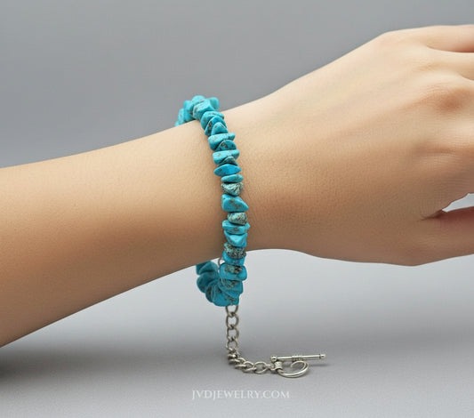 Turquoise chip Bracelet silver toggle clasp unisex