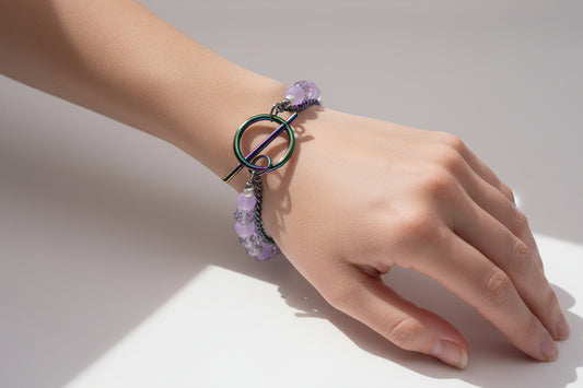 Rainbow lavender Toggle Bracelet - Rainbow ion plating Flower Jewelry