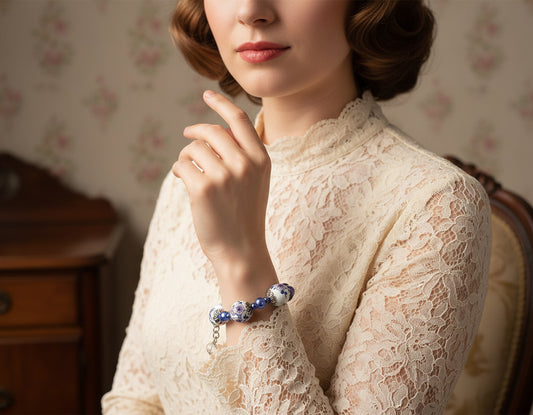 Blue lampwork and porcelain beads Vintage Bracelet