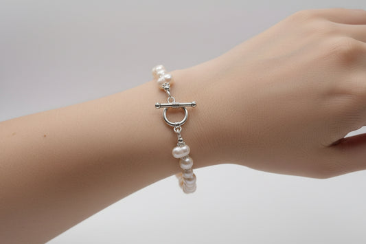 Classic Pearl Toggle Bracelet - Freshwater Pearl Bracelet with Silver Toggle Clasp