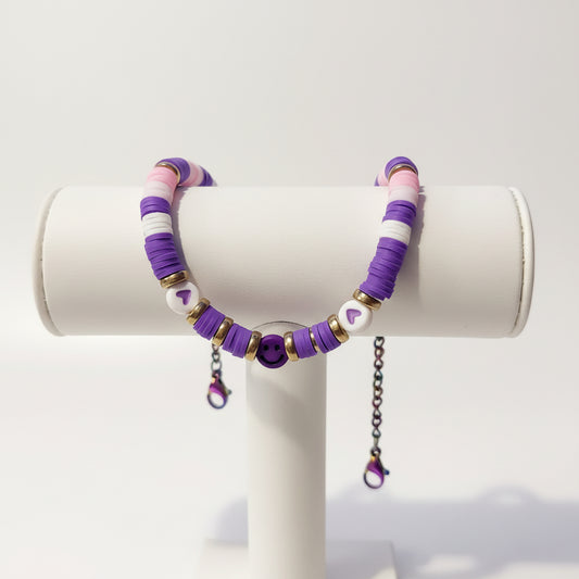 Clay Purple Pink Rainbow Bracelet - Colorful Smiley Face Beaded Bracelet with Stainless Steel Chain
