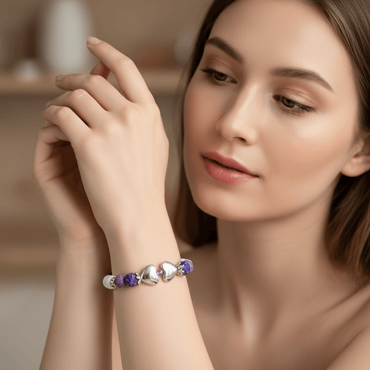 Effortless Slip-On Silver Heart Gemstone Bracelet