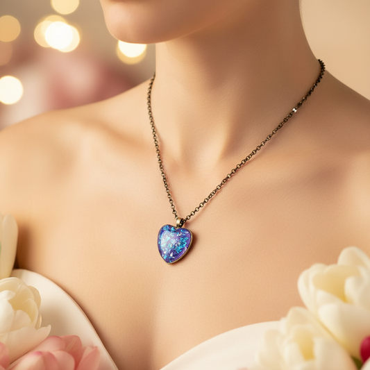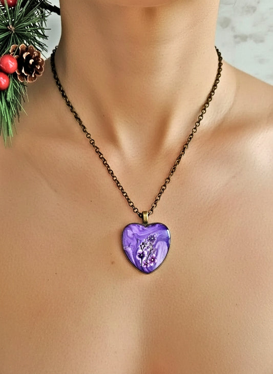 Purple Clay resin Heart flower pendant necklace 20 inches