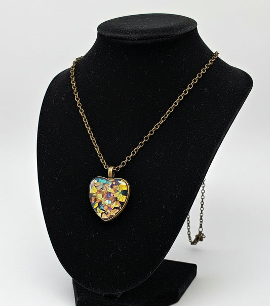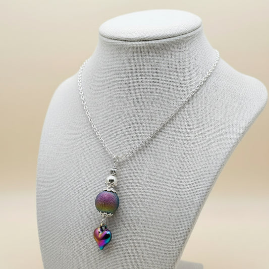 Rainbow beaded Necklace Ion platin Heart 18inch chain