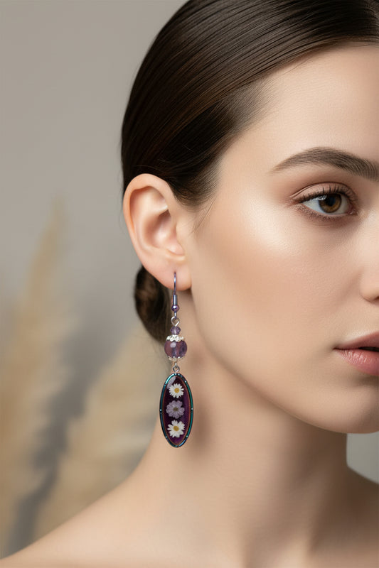 Rainbow Flower Earrings - Handcrafted Dried Flower Resin Jewelry
