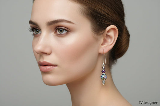 Our earrings feature premium materials including Czech glass beads, lampwork glass, natural gemstones, resin-crete, and high-quality findings. All ear hooks are hypoallergenic, available in silver-plated, stainless steel, or titanium options for sensitive ears.