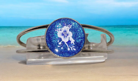 Silver adjustable handcrafted resin blue flower Bracelet accessories