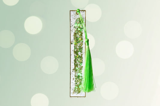 Lime Green Tassel Bookmark with Iridescent Resin Frame