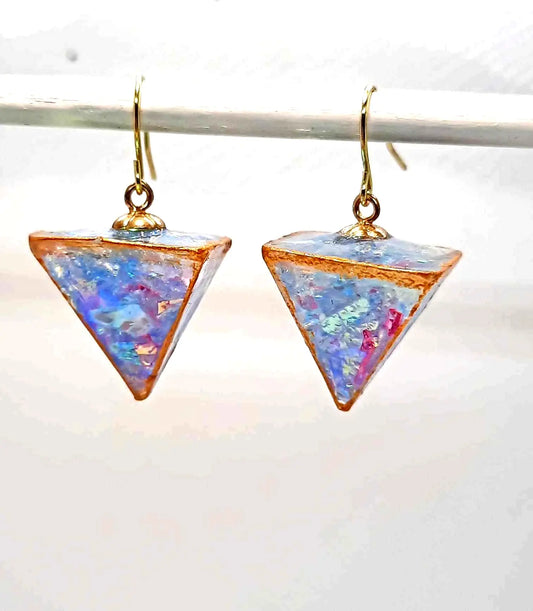 Resincrete navy Blue with Fowers Earrings 2.5 inches