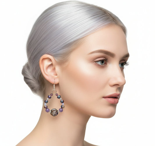 PURPLE PORCELAIN SILVER BEADED EARRINGS