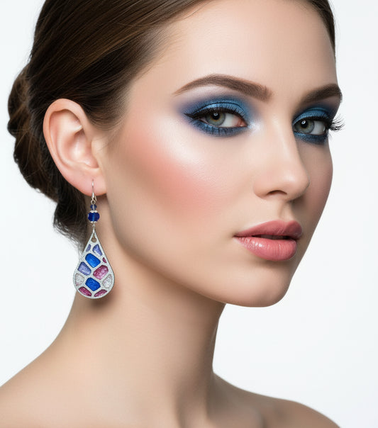 Silver Grey Drop Earrings - Long Elegant Design | 3.25 Inches