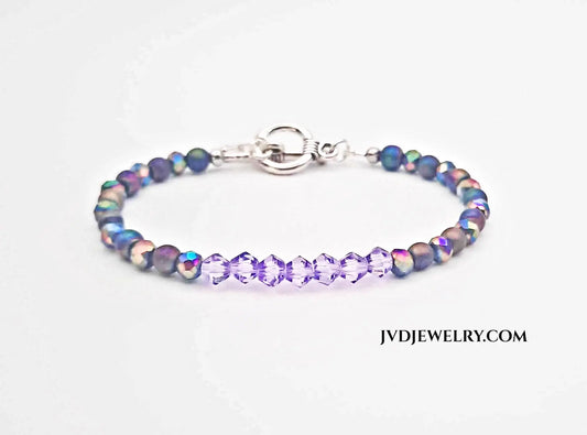 Adjustable pink Swarovski Czech beaded heart bracelet