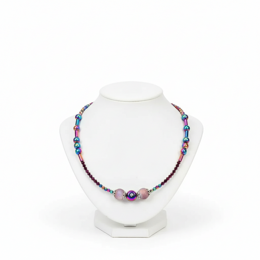 Rainbow beaded Necklace Ion platin Heart 18inch chain