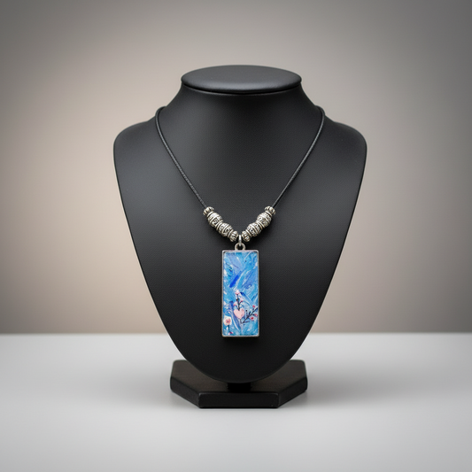 Handpainted Pendant with stickers 1.5" x 0.75" blue pink resincrete Necklace