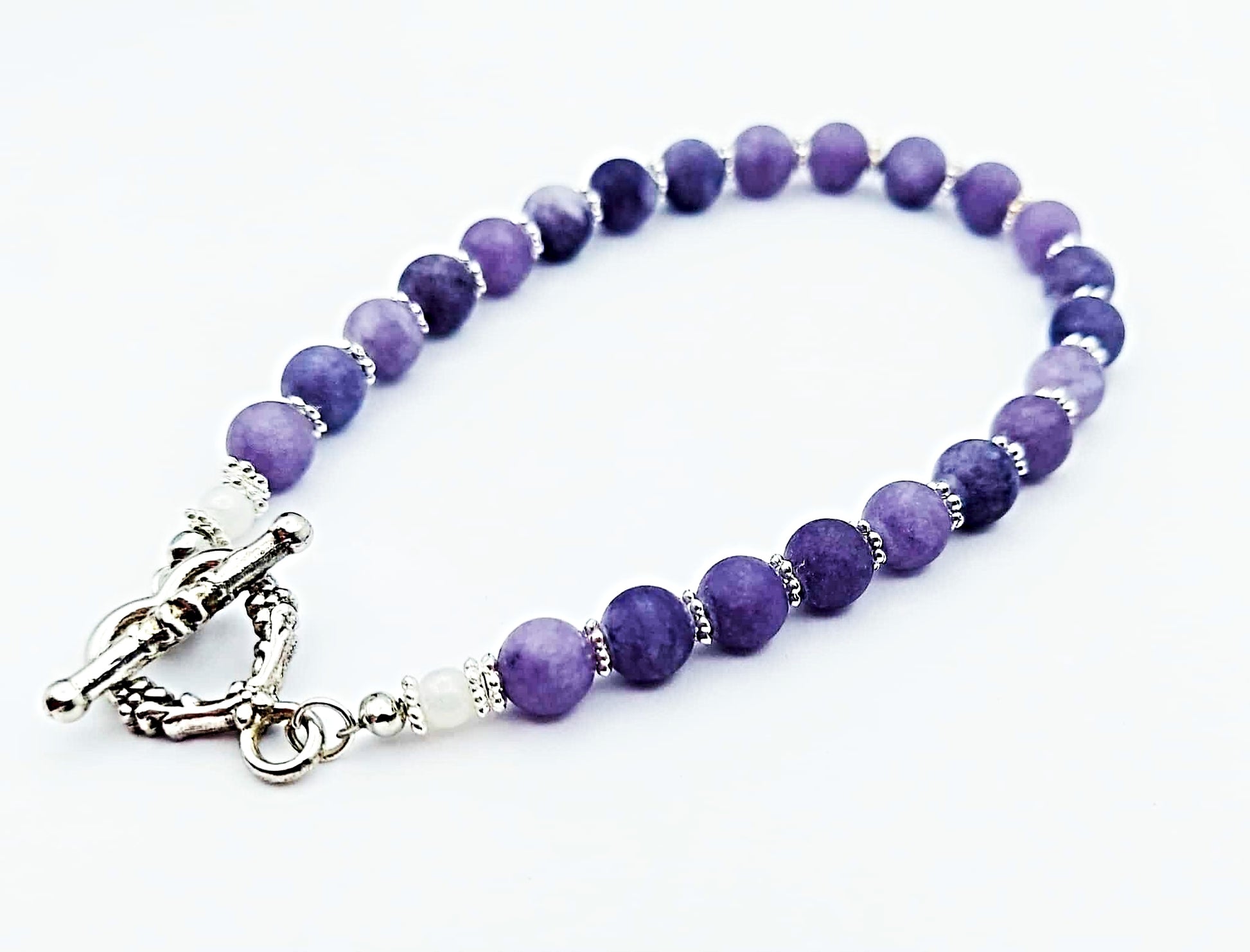 Experience the beauty and elegance of our Purple Gemstones Bracelet, featuring silver-plated daisies and a stunning silver heart toggle clasp. Perfect for adding a touch of sophistication and charm to any outfit, this bracelet measures 7.5 inches and is sure to be a treasured addition to your jewelry collection.