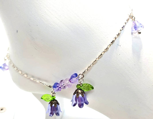 Bracelet de cheville fleur violette chaîne plaquée argent