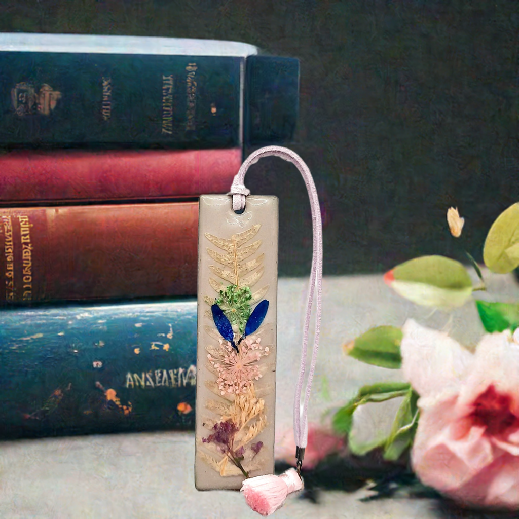 Elevate your reading experience with this beautifully crafted bookmark, featuring real dried flowers and a delicate light pink tassel. Plus, the other side is hand-painted with durable resincrete, ensuring a long-lasting addition to your reading routine.