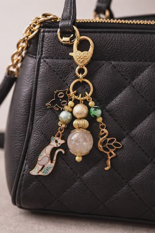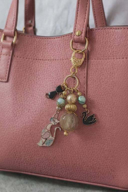 Add a touch of charm and personality to your favorite bag with these delightful animal purse charms. Crafted with antique gold components, each piece features playful enamel charms, natural stones, and beads for a look that's both elegant and fun.