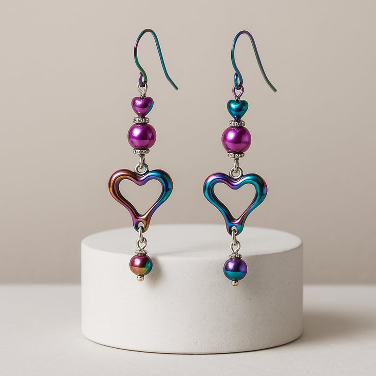 Ion Plating is a cutting-edge process that creates a durable and beautiful finish on these earrings. The vibrant purple rainbow color adds a touch of fun and personality, while the French hooks, glass beads, and silver spacer provide a secure and stylish design. With a 2.5 inch length, these earrings are the perfect addition to any outfit.