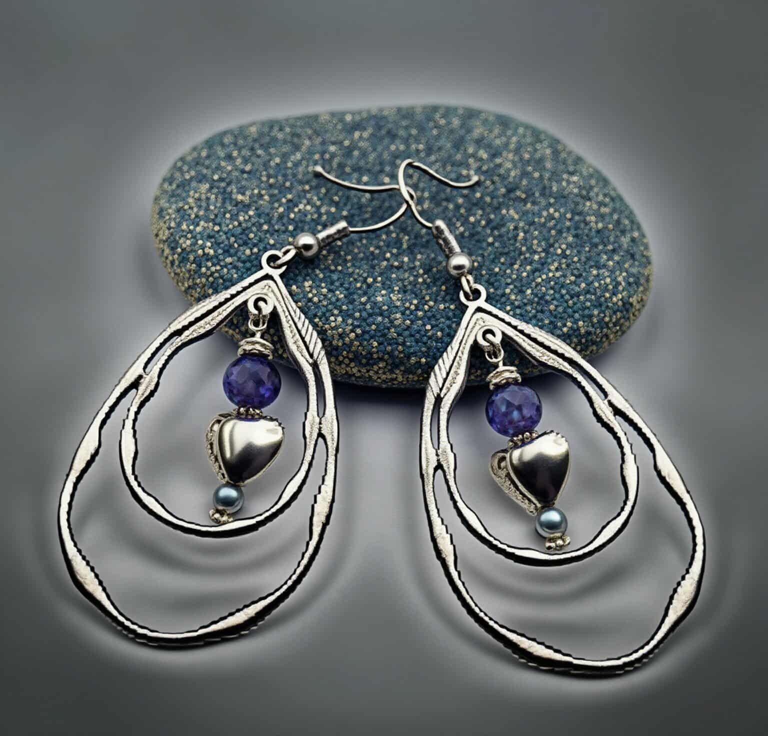 Featuring silver French hooks, these gleaming silver drop hoops are enhanced with silver-plated hearts and delicate beads, adding a charming touch to your look.