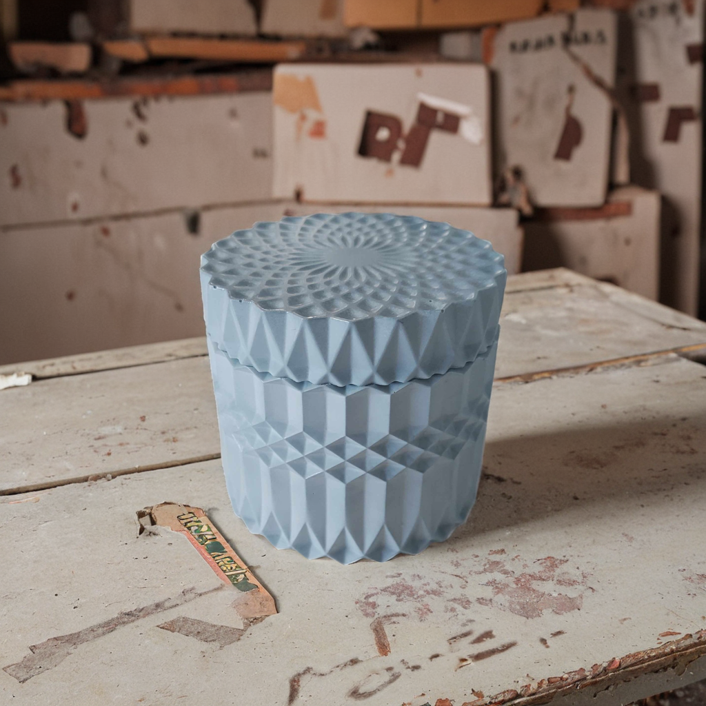 Keep your valuables safe and organized in style with the Trinket jar Resincrete blue teal 3.25" x 3.25" \, 2.25" deep by JVD accessories! Perfect for storing jewelry in your bedroom, bath products in your bathroom, this versatile jar is a must-have for any home. Its durable resin construction ensures long-lasting use, while the vibrant blue teal color will add a touch of charm to any space. Upgrade your storage game with this beautiful and functional trinket jar!